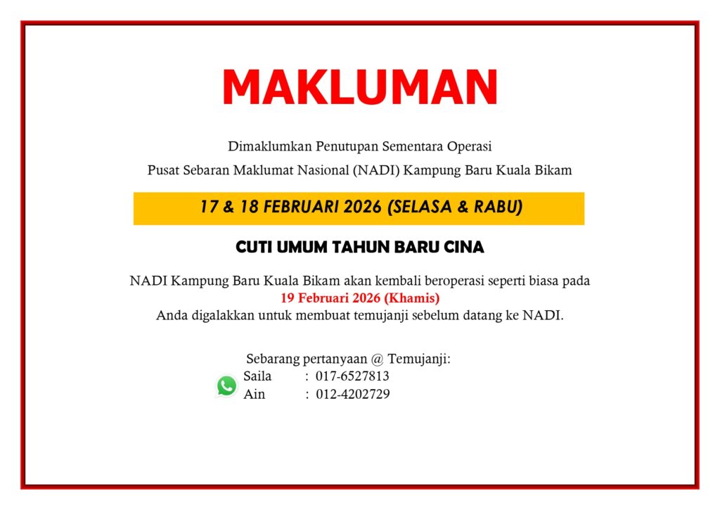 PENUTUPAN SEMENTARA NADI KAMPUNG BARU KUALA BIKAM SEMPENA CUTI TAHUN BARU CINA